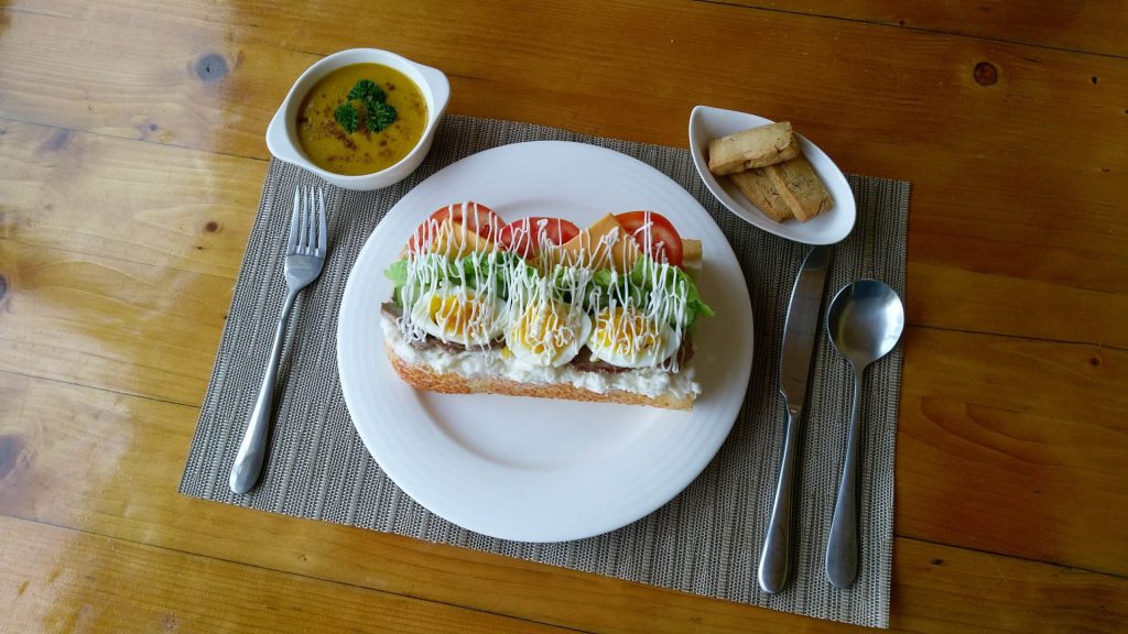 寶姐廚房以無菜單料理著稱,手藝自不在話下。為了配合賞螢方便,特別為賞螢團設製簡餐,吃飽又吃巧,時間還要拿捏得剛剛好。本次寶姐為毛孩賞螢活動設計的菜單有三款選擇,中式餐有排骨麵或牛肉麵,再加三種小菜;西式餐有潛艇堡配南瓜濃湯。中西餐點都有手工餅乾或甜品搭配飲料,飲料可選咖啡、紅茶。